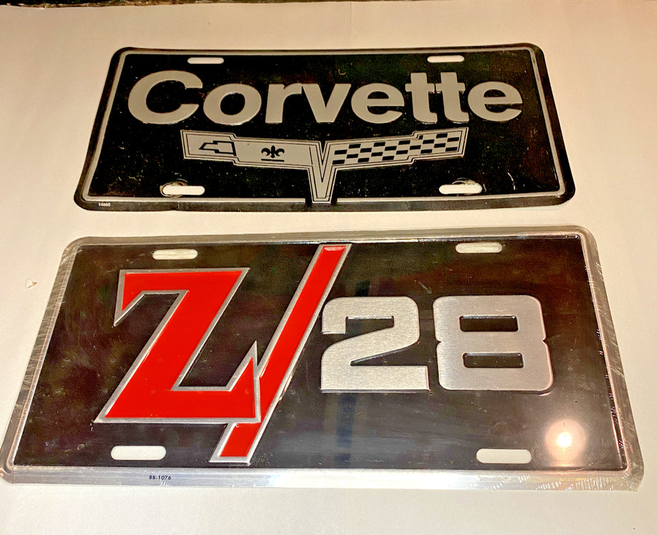 2 Vintage Gm Front Plates Z 28 And Corvette Metal Ebay